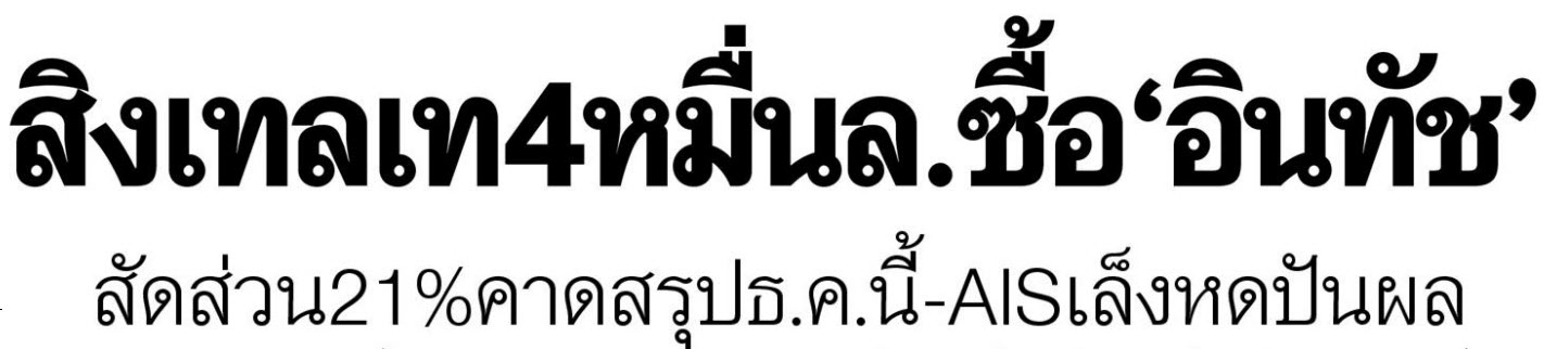 รัชดาภิเษก * "สิงเทล" ซื้อหุ้น "อินทัช" 21% คิดเป็นมูลค่า 40,900 ล้านบาท ผู้บริหารแจ้ง ตลท.คาดได้ข้อสรุปภายใน ธ.ค.นี้ ยันไม่กระทบการบริหาร รับ! รายได้ปีนี้ไม่โต หลังลูกค้าจากไทยคมลด "เอไอเอส" จ่อปรับแผน คาดลดจ่ายปันผล หลังต้นทุนเพิ่มจาก 4G