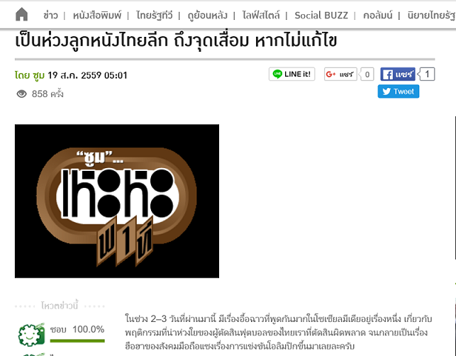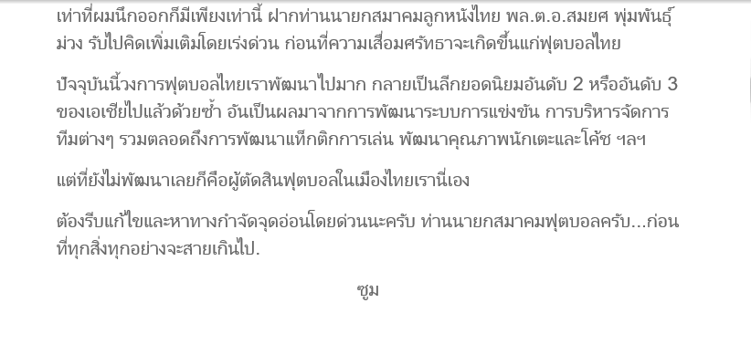 : "เป็นห่วงลูกหนังไทยลีก ถึงจุดเสื่อม หากไม่แก้ไข" --- โดย ซูม :