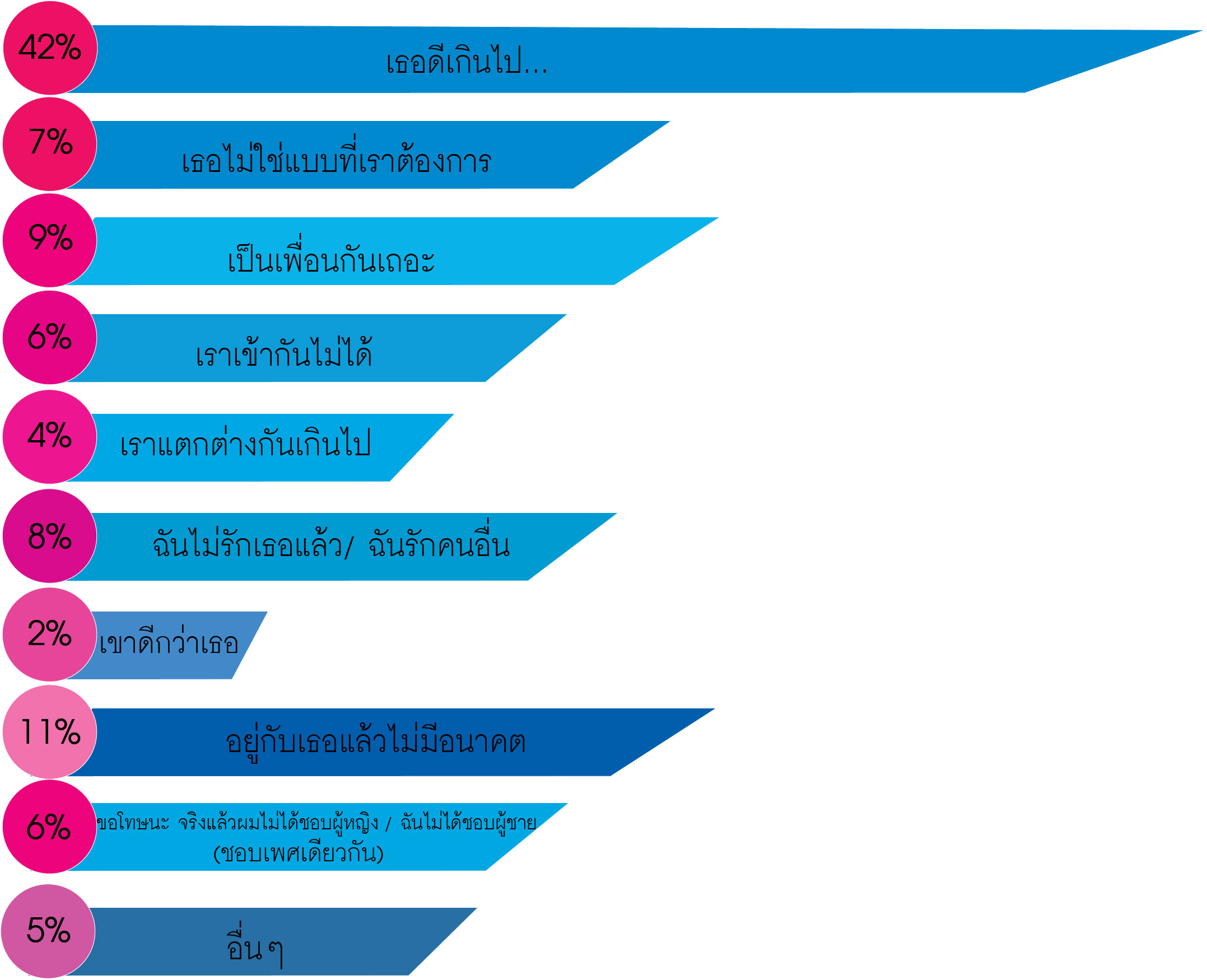 จากกราฟจะเห็นว่า ประโยคบอกเลิกที่ห่วยแตกอันดับ 1 คือ “เธอดีเกินไป” 42%