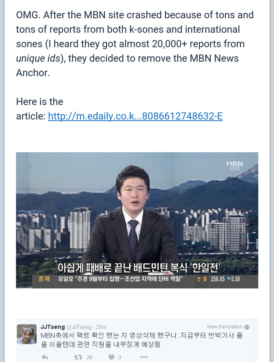 [K-POP] ผู้ประกาศข่าว ช่อง MBN ที่พูดเสียดสีทิฟฟานี่ถูกถอดออกจากรายการข่าวแล้ว