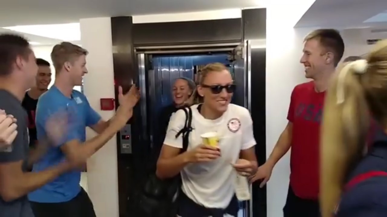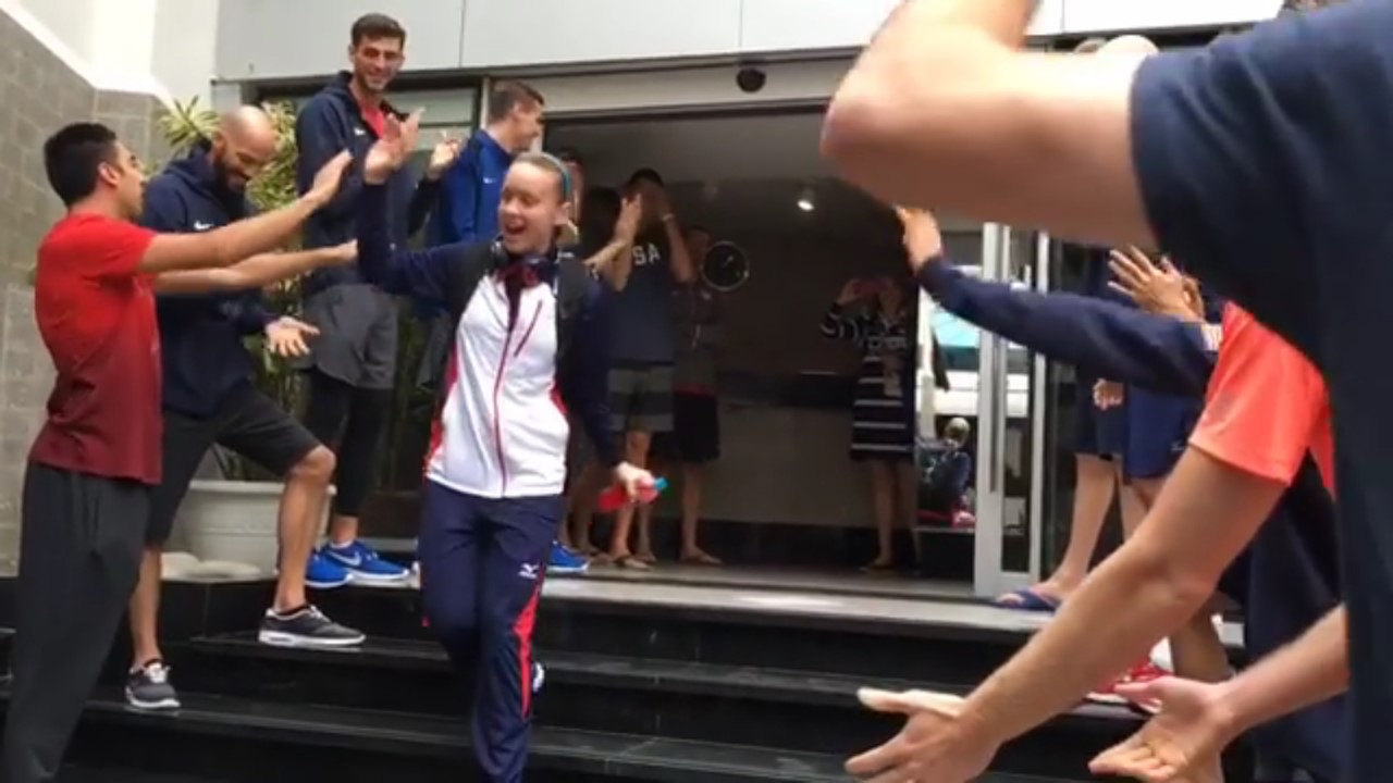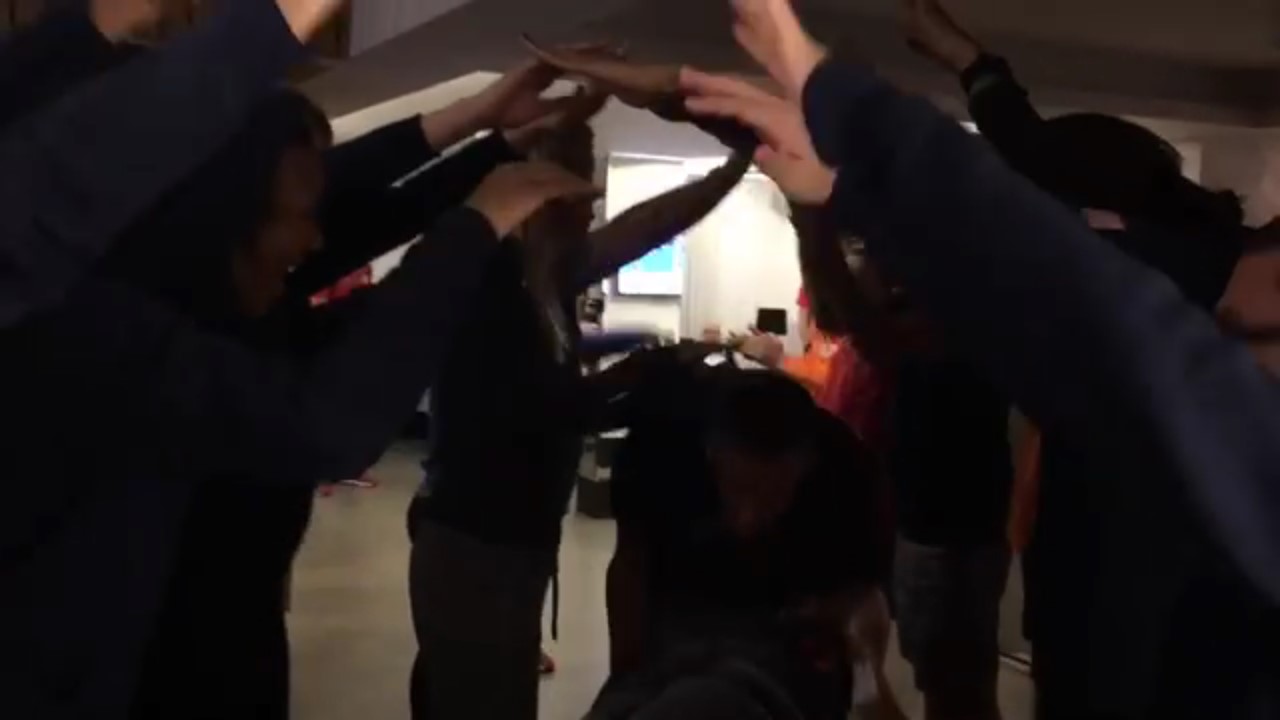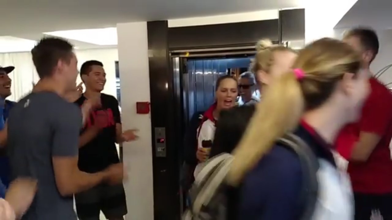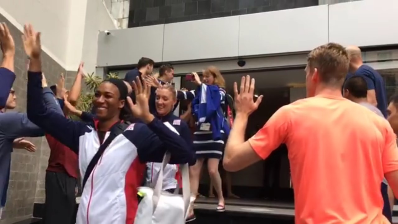 ทีมหญิงก็ออกมาส่งเหมือนกัน แต่ในคลิปมืดอ่ะ เลยไม่รู้ใครเป็นใครบ้าง เห็นแต่หน้าฮิลขาวเด่นมาแต่ไกล 555