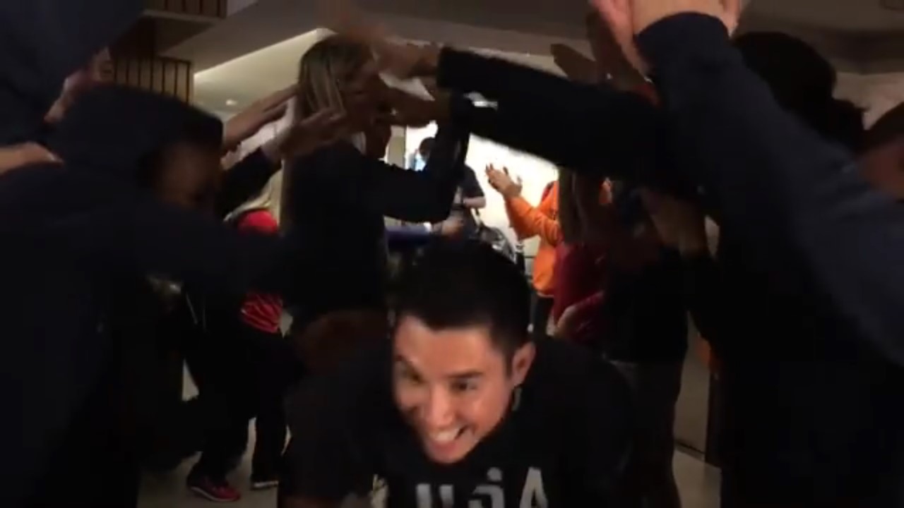 แคปมาจากคลิปที่ลงใน Ig usavolleyball จ้า เมื่อทีมชายมาตั้งขบวนส่งทีมหญิงไปแข่ง