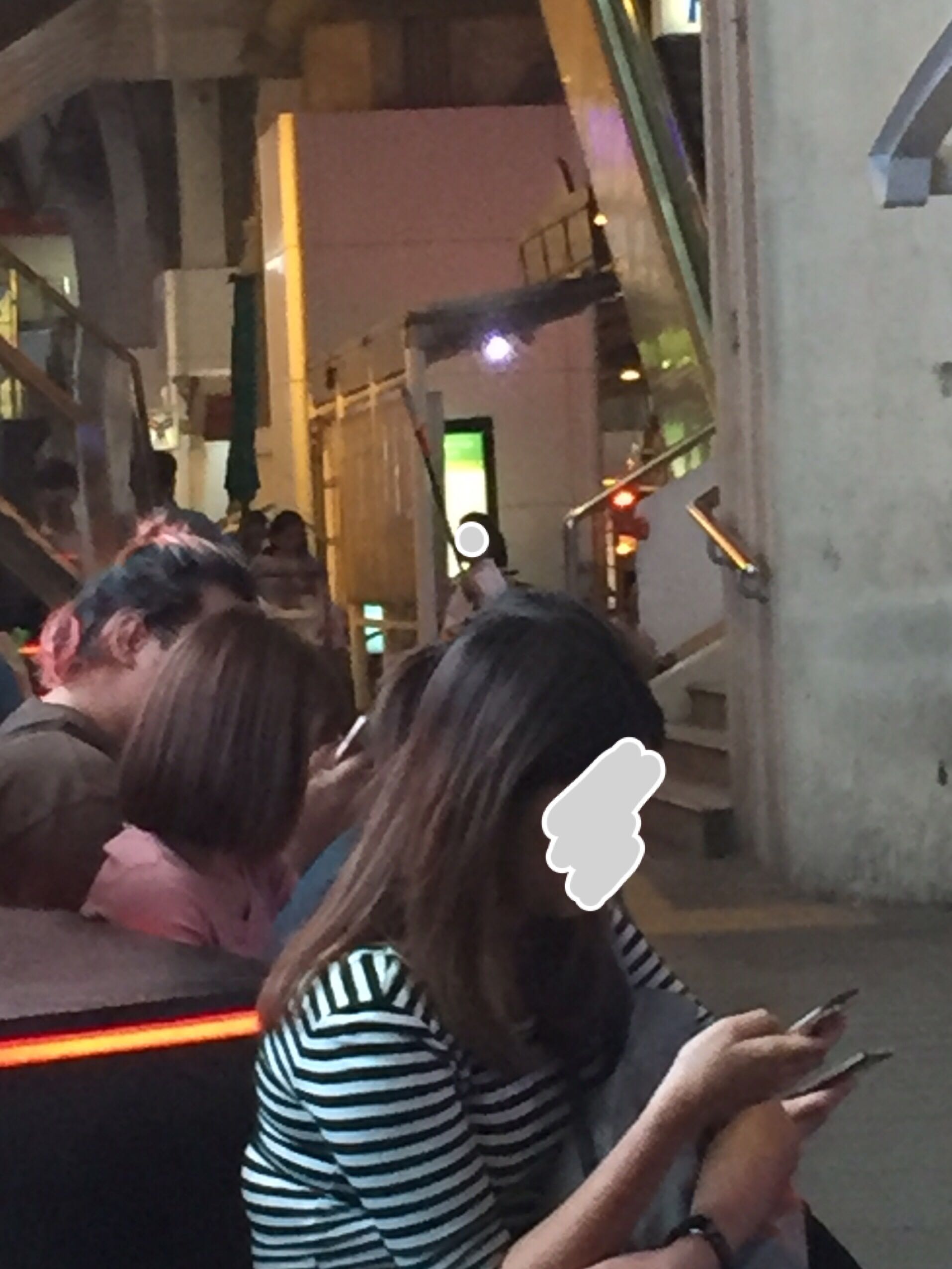มีน้องเสื้อนักเรียนยืนถือวัตถุคล้ายหอกตีนบีทีเอสสยาม
