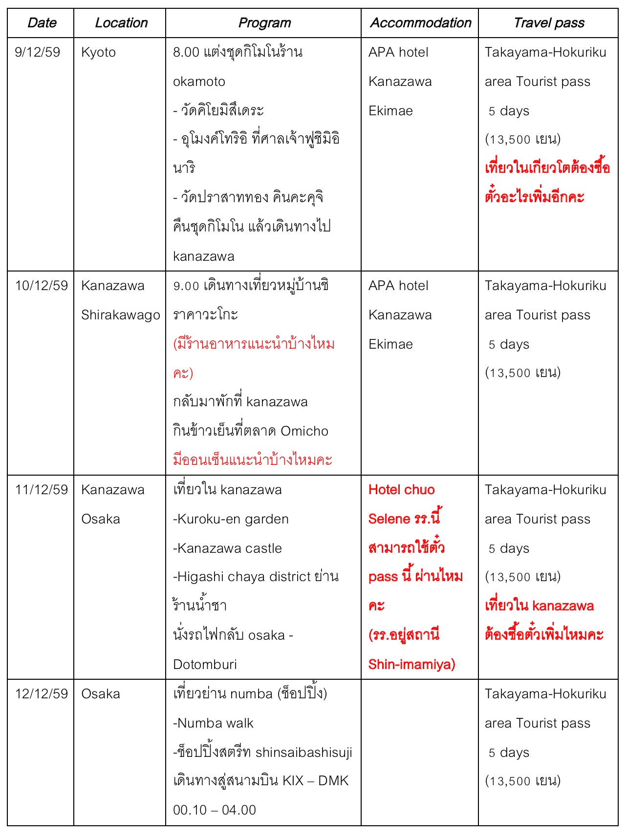 เที่ยวแถบคันไซและkanazawaค่ะ รบกวนเซียนญี่ปุ่นช่วยดูแผนการเดินทางของเราให้ทีค่า