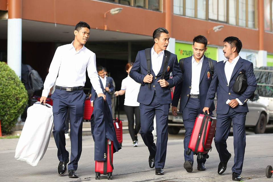 นักเตะทีมชาติไทยชุดใหญ่ ออกจากโรงแรมดิ เอมเมอรัลด์ รัชดา ไปยังสนามบินเพื่อเดินทางไปประเทศกาตาร์