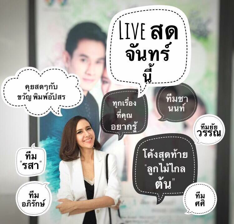 Live สด จันทร์นี้ ทุกเรื่องที่คุณอยากรู้ #ลูกไม้ไกลต้น พูดคุยกับ คุณขวัญ ผู้จัดคนสวย เวลา 11.30 น แฟนเพจ บันเทิงทูเดย์