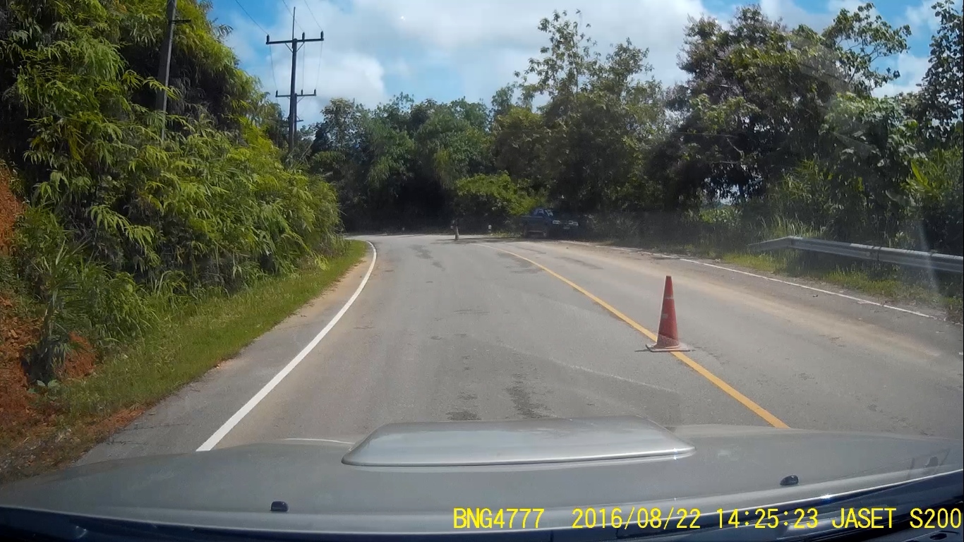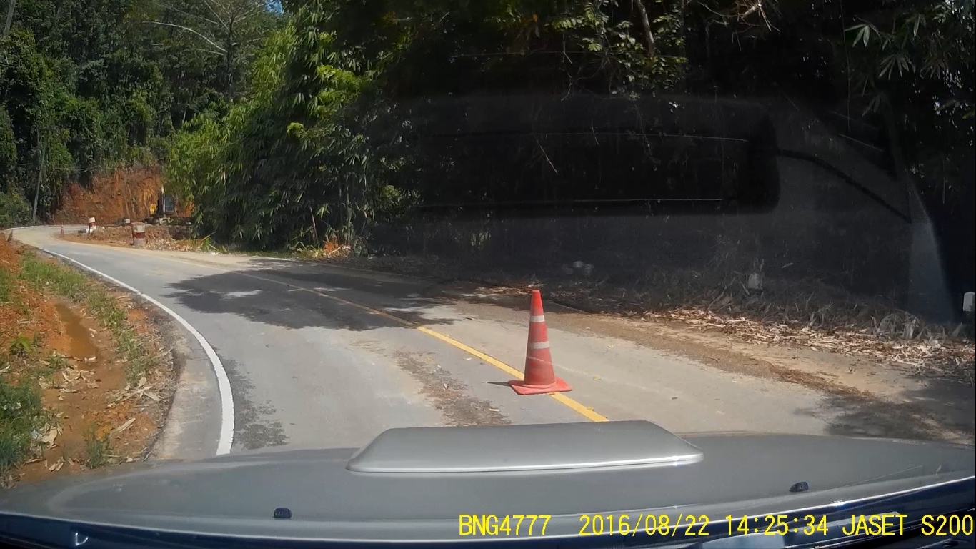 ถัดมาอีกประมาณ 50 เมตร โดยประมาณ ถึงกรวยอันที่ 4 พร้อมกับเจอการซ่อมแซมถนนอยุ่ข้างหน้า