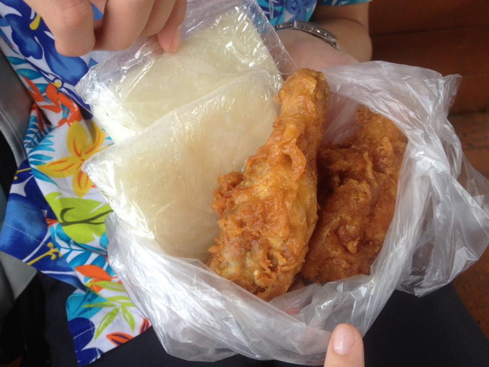นั่งรถไฟไปไม่นานก็จะมีdelivery มาบริการเราถึงที่ เราก็ไม่รอช้าจัดแบบเรียกน้ำย่อยกันไปเบาๆ ไก่ทอด+ข้าวเหนียว หลังจากกินเสร็จไม่นานก็มีบริการมาอีก