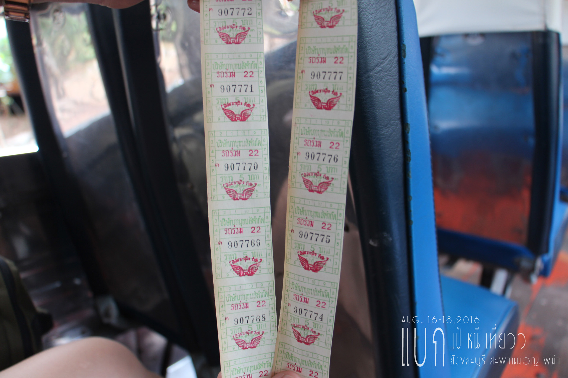 กินเสร็จก็นั่งรถสองแถวไปลงหน้าน้ำตกไทรโยคน้อยเพื่อที่จะต่อรถ 2 ประตู 20 หน้าต่างไปครับ (รถเมล์สีแดง)