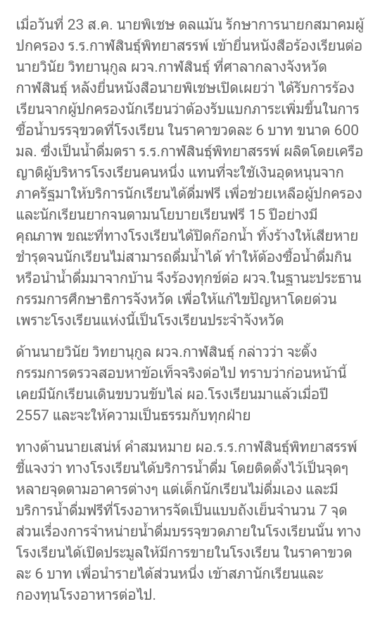 น้ำดื่มโรเรียน 6 บาท ราคาแพง!!!