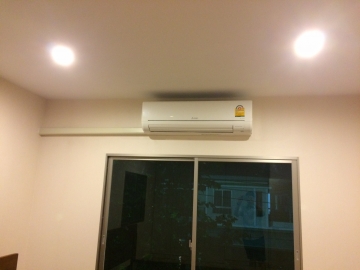 ตอนแรกคิดว่าช่างจะเจาะทะลุข้างหลัง แต่ไปดูอีกทีกลายเป็นแบบนี้ (ช่างกลัวนอกบ้านไม่สวยหรือไง เลยให้มาอยู่ในห้องนอนแทน)