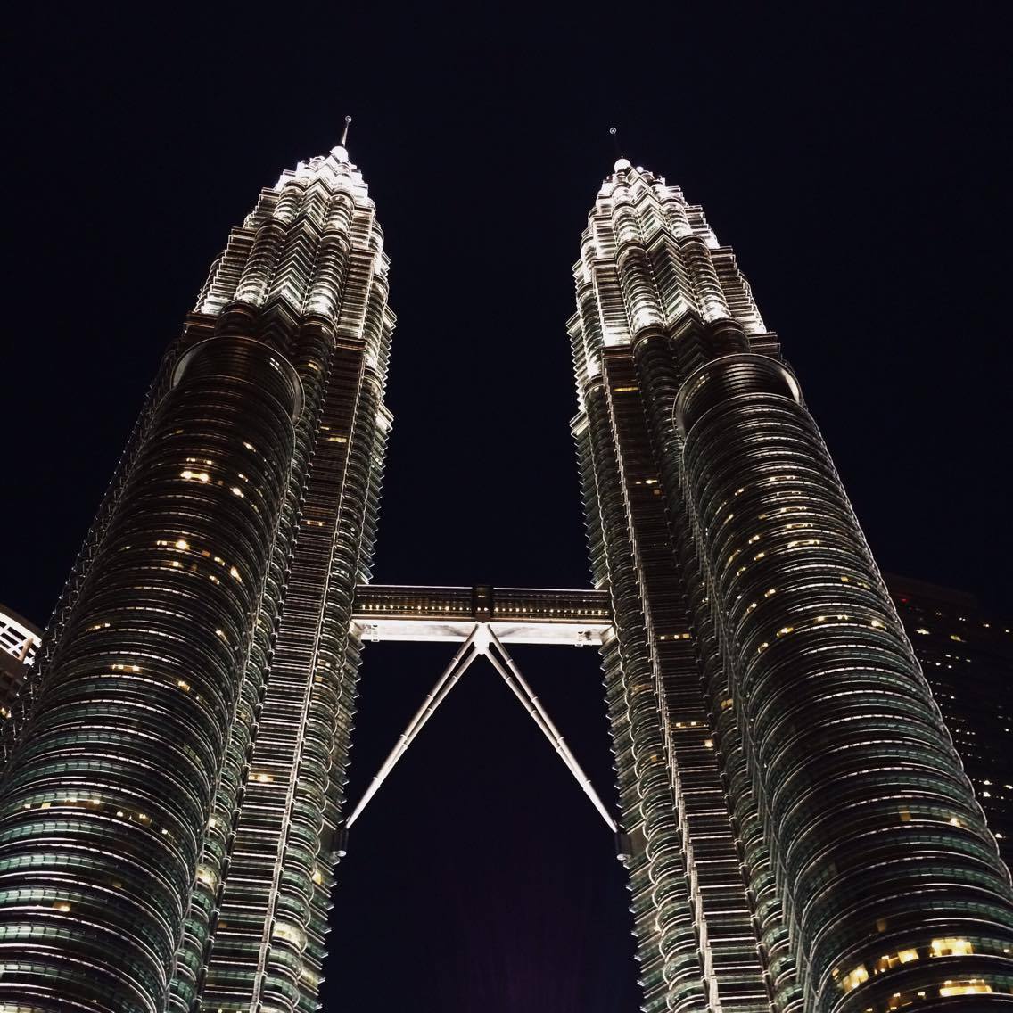 ตึกแฝดยามค่ำคืน สมกับเป็นแลนด์มาร์ค คนเยอะมาก