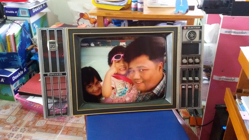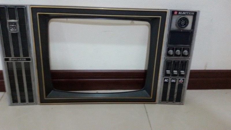 พอดีมีทีวีโบราณ แต่ปลวกกินเหลือแต่หน้ากาก เลยนำม่ทำครับ สำหรับภาพ ใช้เป็นสติ๊กเกอร์โฟมครับ สั่งทำตามร้านไวนิลแผ่นละ 100 ครับ