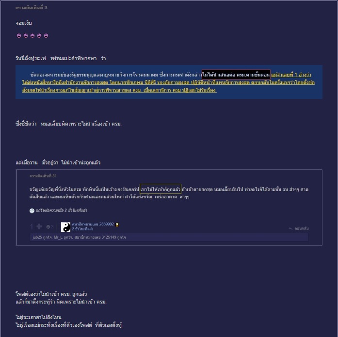 แถมมีการโพสต์เนื้อหาในกระทู้เพิ่มเติม ด้วยการทำเป็นเหมือนคาดการณ์ว่า ผมต้องเข้าไปแถแน่ ๆ