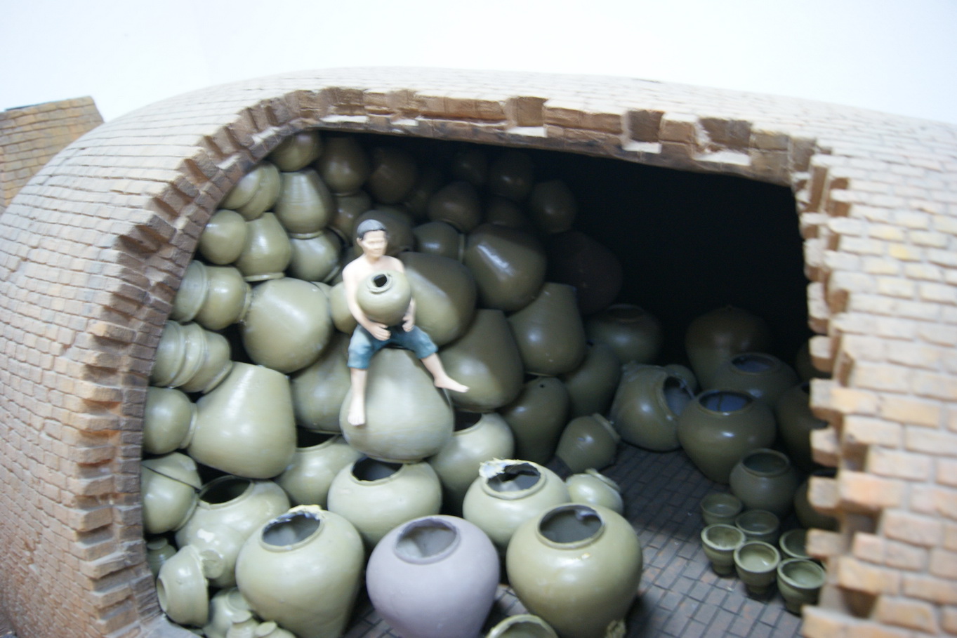 ขนาดคนจำลองเทียบกับขนาดเครื่องปั้นดินเผาที่อยู่ในเตาครับ