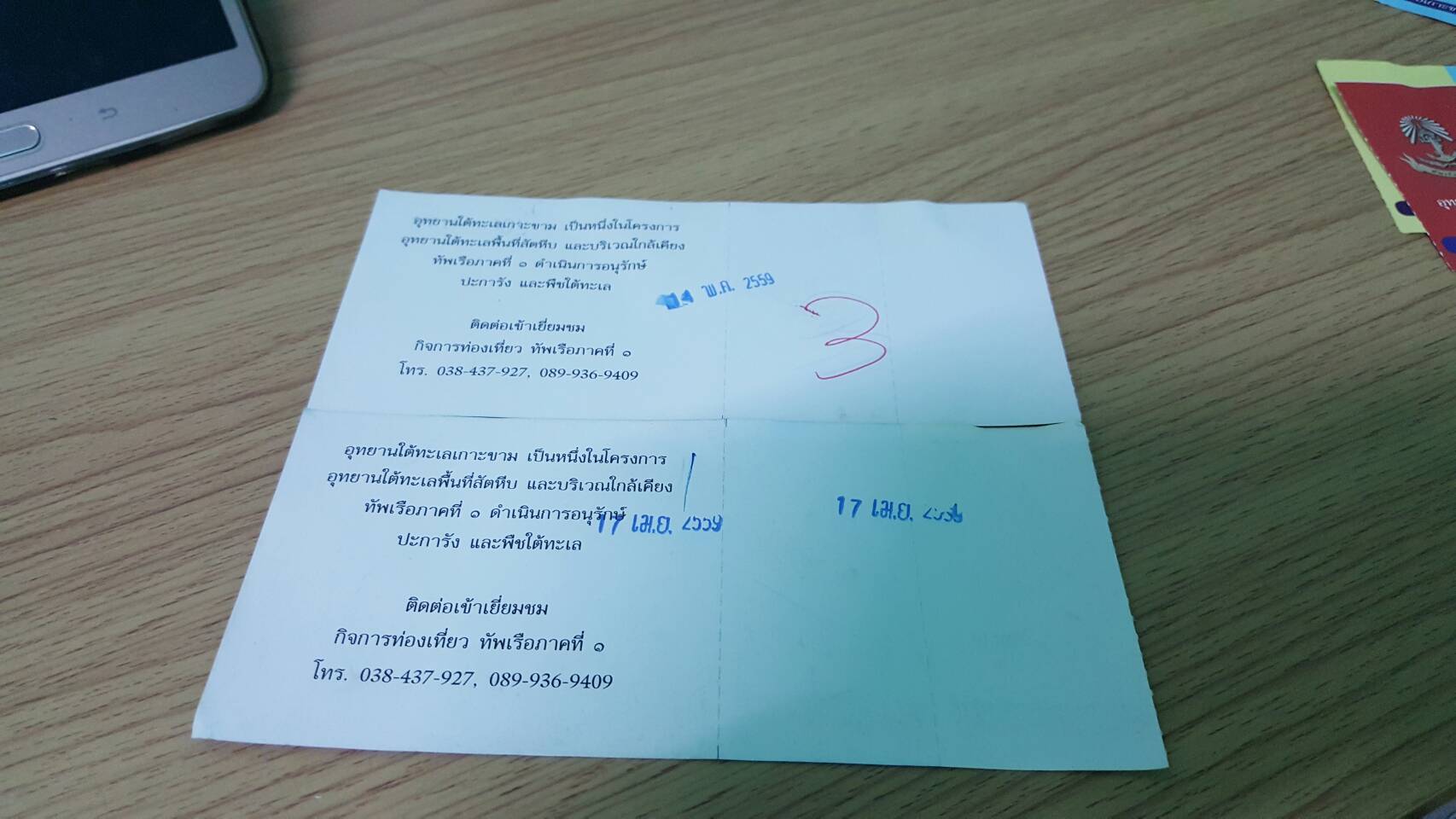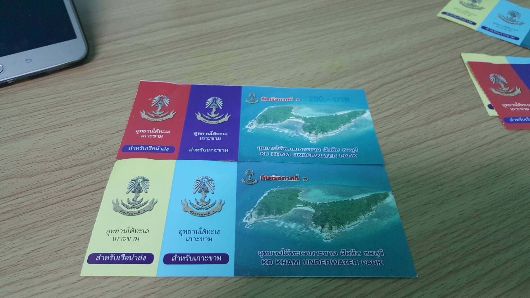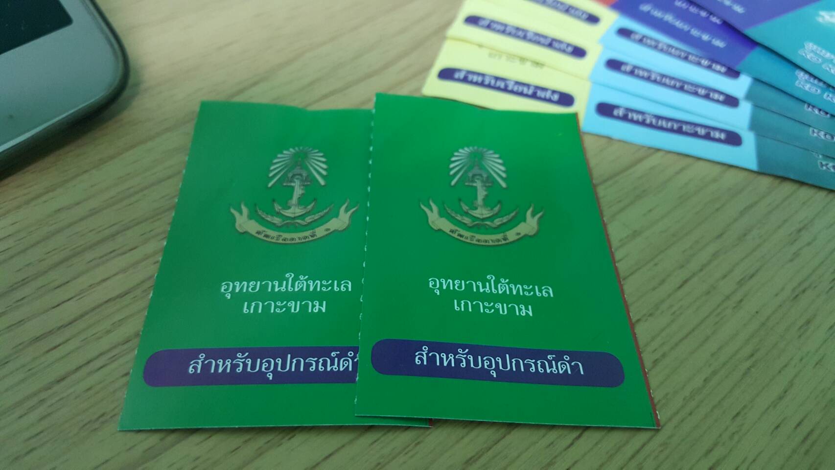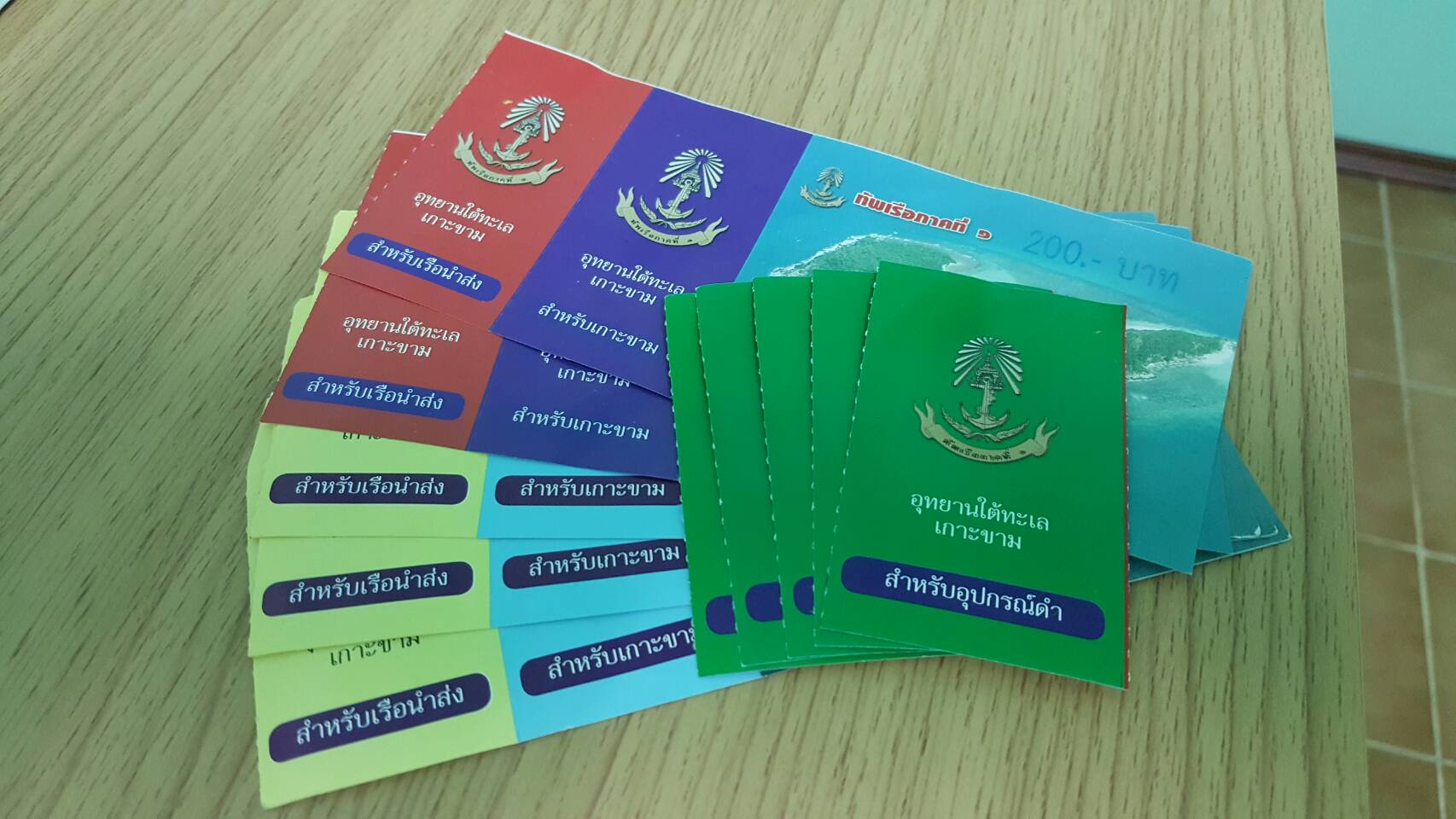 รูปนี้คือ ตั๋วเรือ + บัตรแลกอุปกรณ์ดำน้ำบนเกาะ