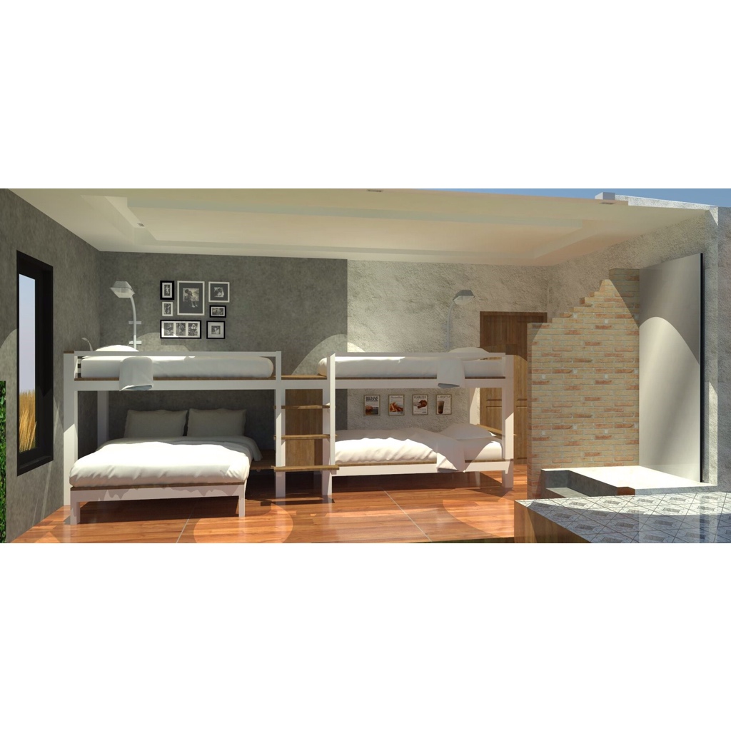 ห้องนอนแรกเป็นเตียงสองชั้นสองเตียง