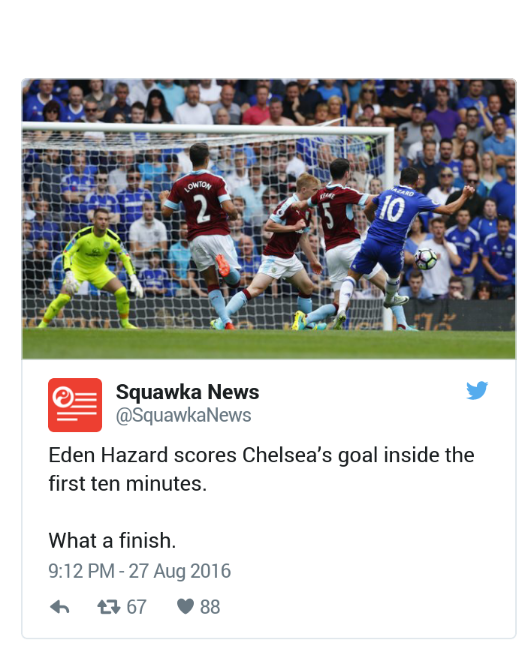 "แต่ตอนนี้ เราได้เห็นแล้วว่า นักเตะอย่าง อาซาร์ สามารถเรียกฟอร์มเก่ง ในอดีตช่วงท็อปฟอร์มกลับคืนมาได้อีกครั้ง เขาทำผลงานได้ดีมากเหมือนกับครั้งแรกที่เพิ่งย้ายมาเล่นให้ เชลซี ซึ่งผมมั่นใจว่าเขาจะยังกลับคืนสู่จุดสูงสุดได้อีก"