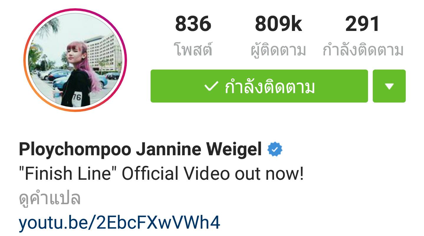 ปังมาก! Instagram ของพลอยชมพู @jannineweigel ได้รับเครื่องหมาย “Verified Badge” แล้ว!