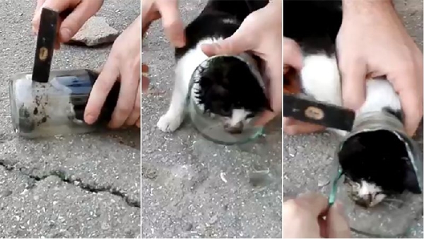 เป็นคลิปนาทีช่วยลูกแมวในตุรกีที่ไปเล่นซนอีท่าไหนจนหัวติดแหง็กในขวดแก้ว โดยการช่วยเหลือจะค่อยๆใช้ค้อนทุบขวดทีละส่วนจนแตก พร้อมจับลูกแมวไม่ให้ดิ้นไปมาเพื่อป้องกันเศษแก้วบาดด้วย คลิปนี้มียอดชมจำนวนมากหลังเผยแพร่ได้ไม่นาน