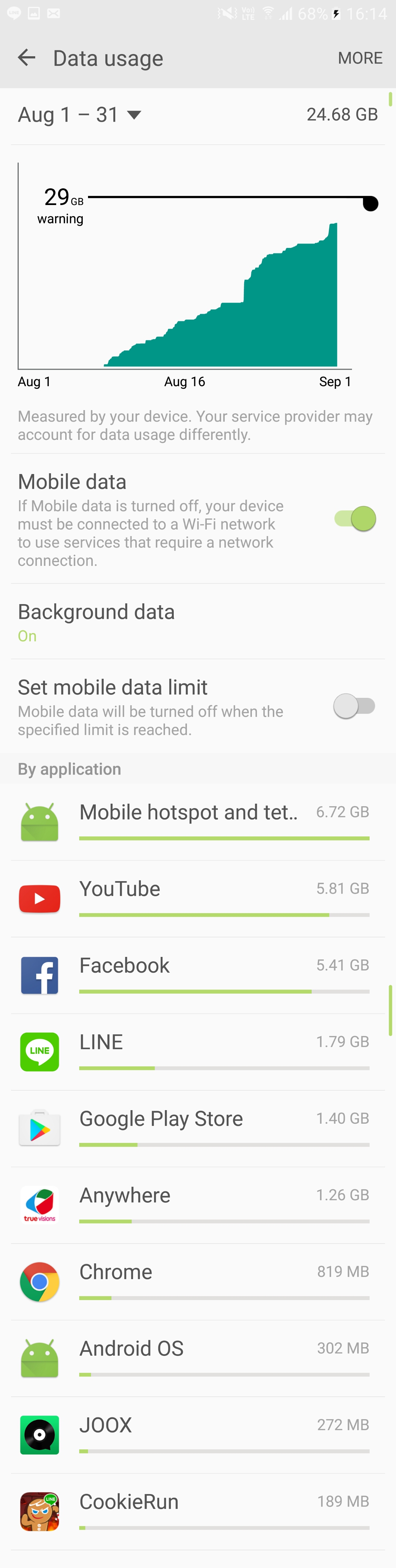 ทั้งนี้ผมก็เลย งง ว่าใช้อะไรไปเยอะขนาดนี้ โทรไปถาม call center ก็บอกว่าจะตวจสอบให้ใช้เวลาสามวัน และก็ไม่โทรกลับ พอโทรตามก็บอกว่าเข้าเว็ปนี้ๆๆๆ บลาๆๆ มากมาย แต่บอกไม่ได้ว่าเข้าส่วนไหนเยอะที่สุด(พูดง่ายๆ เช็คไม่ได้นั่นหละ) และผมตรวจสอบช่วงวันที่ 19/08/16-21/08/16 เค้าบอกว่าใช้ประมาณ 9GB ซึ่งสามวันนี้เป็นวันหยุดเาร์อาทิตย์และผมไม่ได้ไปไหนเลย อยู่แต่บ้านและใช้ wifi ตลอดเวลา ก็เลย งง หนักเน็ตจะรัวอะไรขนาดนั้น call center ก็บอกว่า กรณี่อยู่บ้านและสัญญาณ wifi ไม่สเถียร โทรศัพท์จะมาจับสัญญาณ 4g แทน (โทษทีบ้านผมใช้ Dual band router 5Ghz ซื้อแยกแพงด้วย + AIS Fiber 50/10 -- ถ้านี่ไม่เสถียรก็เลิกใช้เหอะะะ)