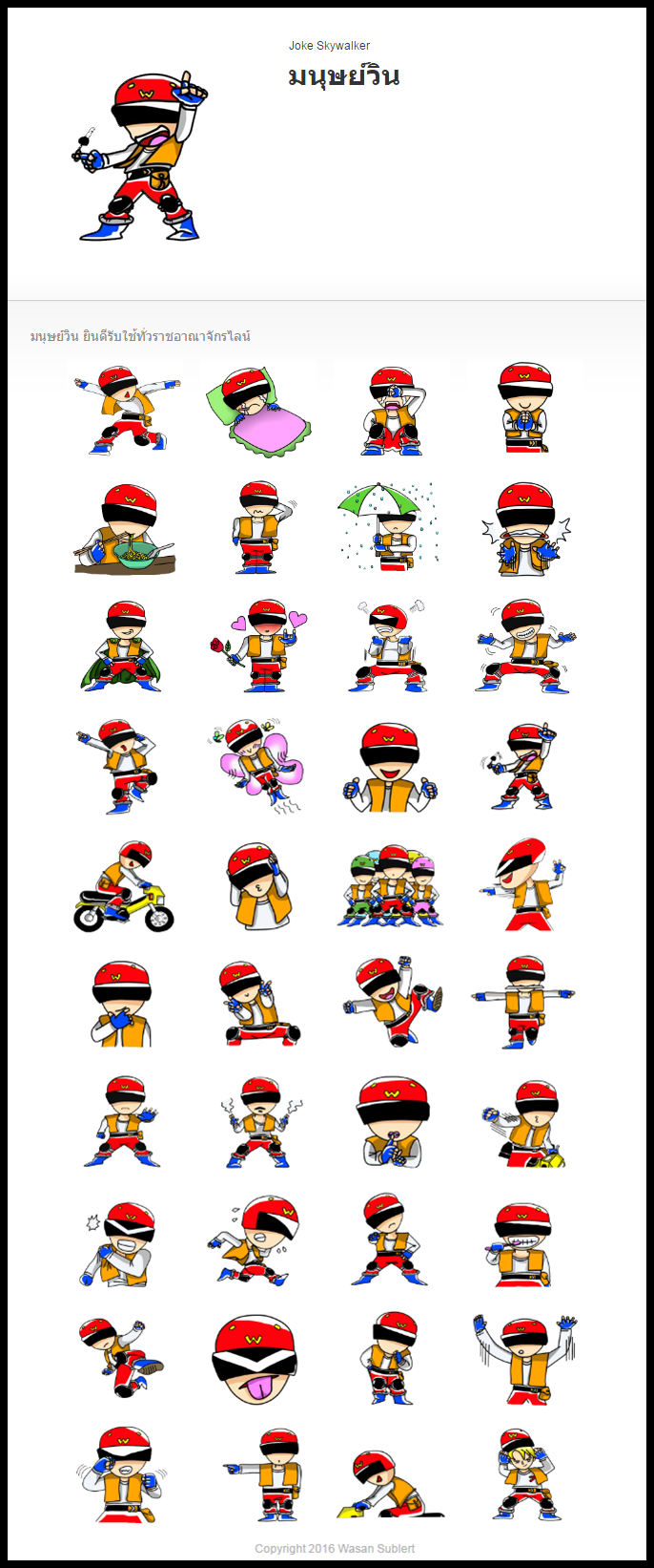 ...จากการที่ได้ทำสติ๊กเกอร์ทั้ง 3 ชุด(และกำลังจะมีตามมาเรื่อยๆ) ก็ไม่ได้คาดหวังว่าจะได้เป็นหลักหมื่นหลักแสนอะไรหรอกครับ แค่เห็นผลงานของเรามันได้เกิดขึ้นมานี่ก็ตื้นตันใจสุดๆแล้ว ขอบคุณไลน์ที่ให้โอกาส ขอบคุณกระทู้เกี่ยวกับสติ๊กเกอร์ไลน์ทุกๆกระทู้ที่ผมเข้าไปอ่าน คลิปยูทูป กูเกิล ขอบคุณคุณพี่สาวของผมเอง ที่เข้ามาจุดประกายทำให้ได้เข้ามาทำตรงนี้ครับ และที่ขาดไม่ได้คือเพื่อนๆที่อุดหนุนกัน การเข้ามาตั้งกระทู้นี้ก็อยากให้สติ๊กเกอร์เป็นที่รู้จักในวงกว้างมากขึ้น อยากให้ทุกๆคนได้เห็น และหากท่านใดเห็นแล้วชอบสติ๊กเกอร์ที่ผมทำค่อยโหลดไปใช้กันครับ ส่วนเรื่องยอดการขายนั้นไม่ต้องพูดถึงครับ 3 ชุดรวมกันยังไม่ได้ยอดขั้นต่ำที่ไลน์จะโอนส่วนแบ่งมาเลยครับ เพราะฉะนั้นท่านที่คิดว่าอยากจะทำก็ขอให้อย่าไปคาดหวังอะไรมากครับ หากเรามีใจรักที่จะทำ ได้ลงมือทำเราก็มีความสุขแล้วครับ และท่านจะได้รับความภาคภูมิใจ เวลาที่มีคนใช้สติ๊กเกอร์ของเราครับ