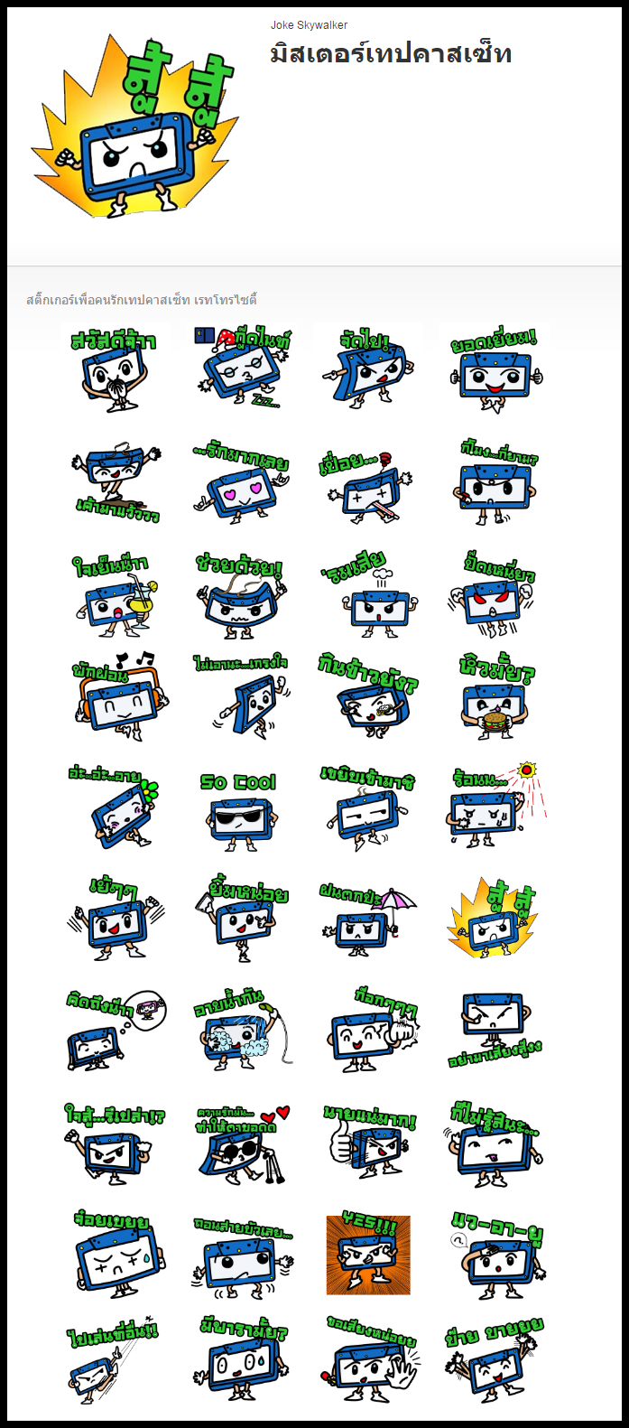 เวลาผมเล่นเฟสบุ๊คผมก็จะไปแอดเข้ากลุ่มเรทโทร กลุ่มเทปคาสเซ็ท กลุ่มซื้อขายเทป ฯลฯ เรียกว่าชีวิตประจำวันจะอยู่กับเทปตลอด (ตอนนี้ที่ร้านก็เริ่มอเาเทปมาขายอีกหนึ่งแผนก) ก็เลยทำสติ๊กเกอร์เจ้ามิสเตอร์เทปคาสเซ็ทนี้ขึ้นมา