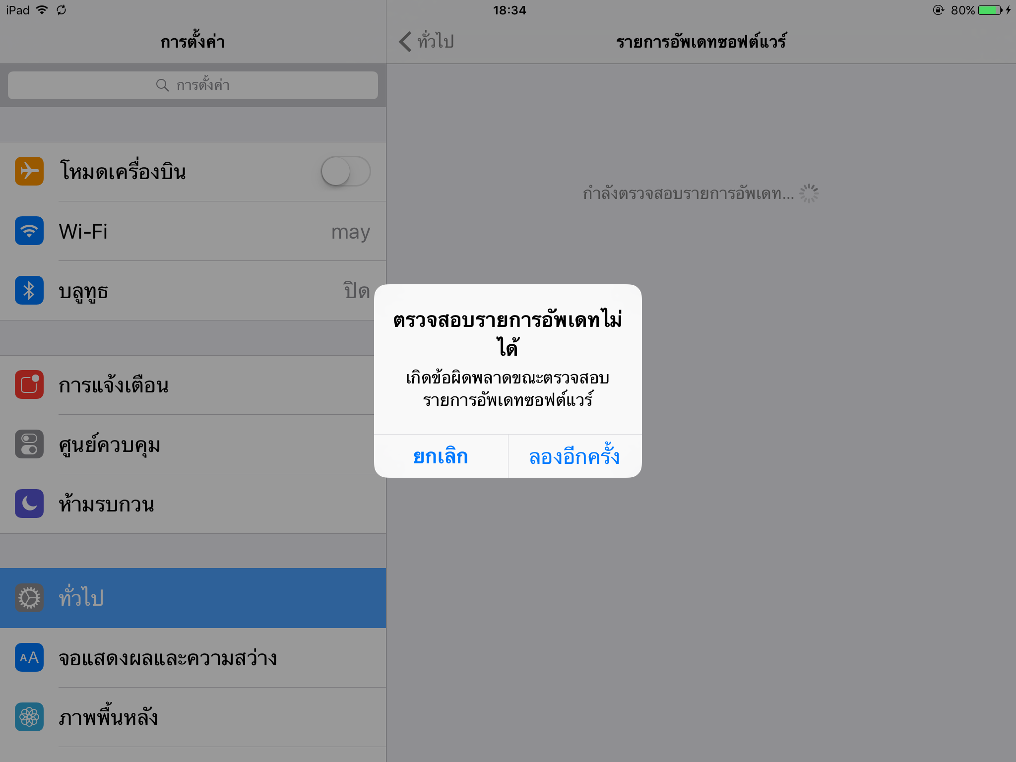 ไอแพด มินิ4 เป็นอะไรไม่รู้ค่ะ มันไม่สามารถดูได้ว่าตอนนี้เป็นเวอร์ชั่นไหน ขึ้นว่าตรวจสอบการอัพเดทไม่ได้