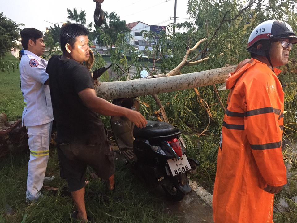 ยุ้มขนาด! ขี่ จยย. อยู่ดีๆ ต้นไม้ใหญ่หัก ซวาดหัวไปหน้อย ส่วนรถขำก๊ะงะ กับต้นไม้ - แม่โจ้ เชียงใหม่