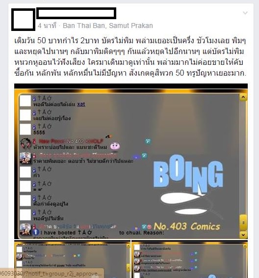 ละ แล้วก็เตะผมออกจากห้อง xat ที่ในเว็ปที่เค้าขายไปครับ แล้วทีนี้ประเด็นมันอยู่ที่ว่า เจ้าของเค้าเอาผมไปประจานในกลุ่ม ประมานว่า ไอพวกซื้อ 50 บาทเอ้ย ทำไมเรื่องมากจังวะ บลาๆๆๆ ตามรูปเลยครับ ที่มาโพสนี่ไม่ใช่ไรหรอกครับ พอดีคิดว่า ถ้าผมไม่เข้าไปดูในกลุ่มนี่คงไม่รู้เลยซินะครับว่าโดน ด่าลับหลังอยู่