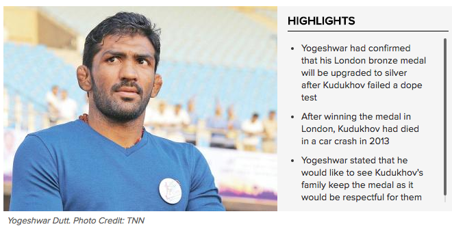 มีมติเพิกถอนเหรียญรางวัลของนักมวยปล้ารัสเซียแล้วจะมอบให้นักมวยปล้ำอินเดียแทน