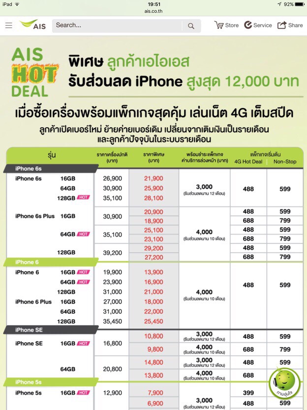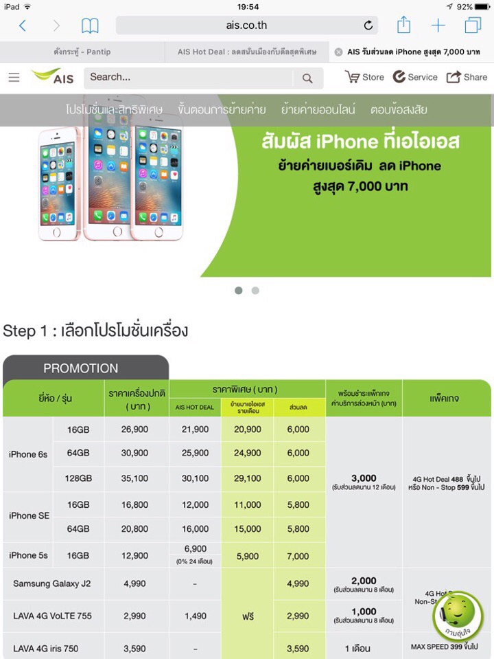 พอดีกำลังเลือกดูโปร Iphone se ของเอไอเอสน่ะค่ะ ย้ายค่ายเบอร์เดิม