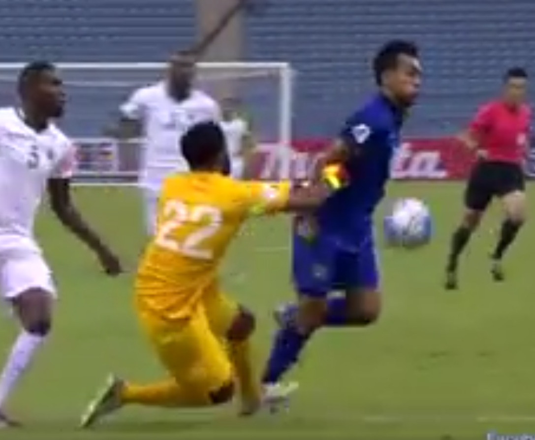 บอกตรงๆ ดูยากจริงๆครับ ถ้าล้ำเข้าไปในเขตโทษทั้งตัวแล้วมั่นใจว่าเกินเข้าไปไม่กี่เซนติเมตรแน่นอน ไม่ได้ล้ำเข้าไปชัดเจนแบบผู้บรรยายไททยชี้นำแน่ๆ