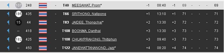 ผ่านไปแล้ว 2 วันครับ เมื่อวานต้องขออภัยอย่างแรงที่ได้รายงานว่า จะมีการตัดตัวที่คะแนน +1 แต่เอาเข้าจริงเขาตัดตัวที่ E ครับ ก็เลยมีนักกอล์ฟที่ผ่านการตัดตัวเข้ามาแค่ 2 คนคือ ธงชัย ใจดี และธิติพันธ์ ช่วยป
