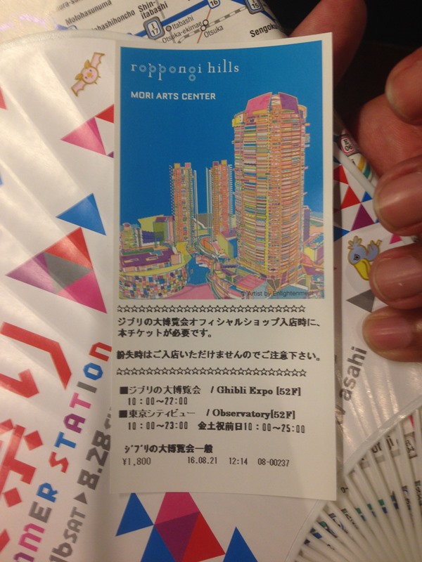 เมื่อสุดสัปดาห์ก่อนหลายคนไปสนุกกับเทศกาลดนตรี อย่าง summersonic กันมาผมเองก็ไป แต่ไปแค่วันเสาร์วันเดียวและพอวันอาทิตย์ก็ไปงาน Ghibli expo ที่ roppongi hills มาครับ ซึ่งก่อนที่จะไปได้เห็นมีเพจแนะนำท่องเที่ยวพูดถึง แต่ติดเรื่องการชื้อตั๋วเข้างานเลยกะว่าวัดใจวันจริงเลยที่เดียวว่าจะชื้อหน้างานได้รึเปล่า