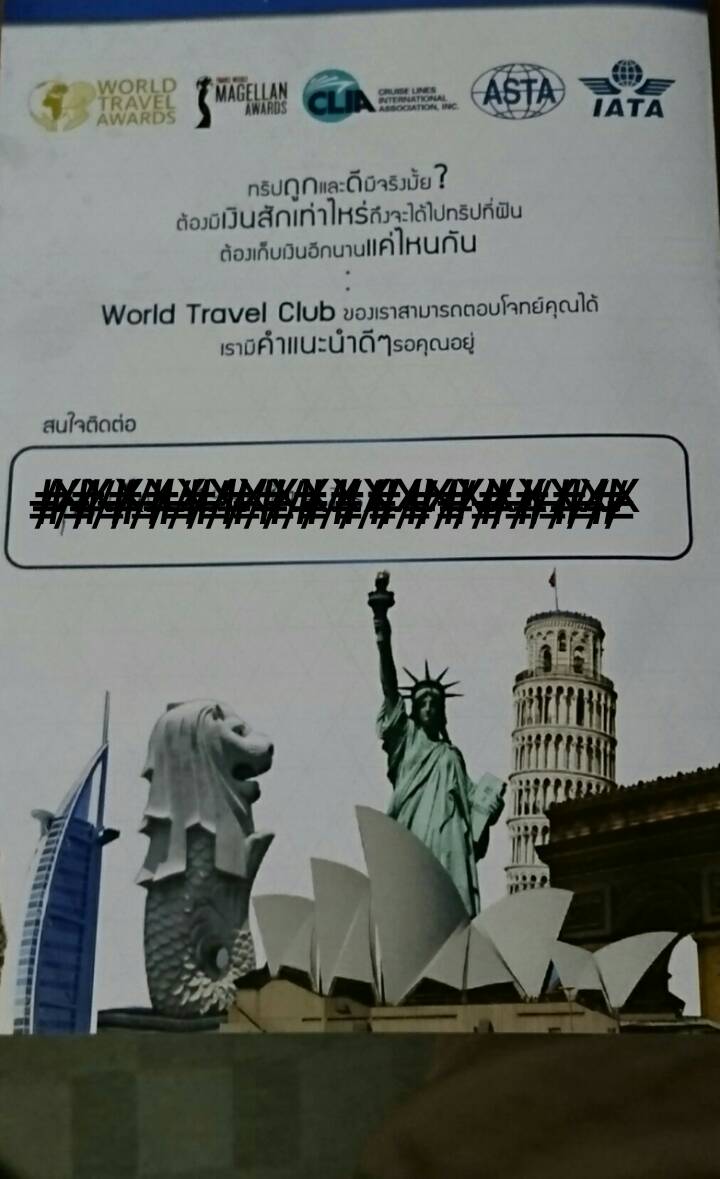 เดินงานไทยเที่ยวไทยวันที่ 4 ก.ย. ได้แผ่นพับมาใบนึง รบกวนผู้รู้ช่วยวิเคราะห์ ว่าใช่แนวเดียวกับ ขายตรง 'อาชีพนักท่องเที่ยว' หรือไม่ครับ รายละเอียดมีแค่เบอร์ติดต่อกลับ ไม่มีชื่อบริษัทอะไรเลยครับ ขอไม่เปิดเผยชื่อและเบอร์โทรนะครับ