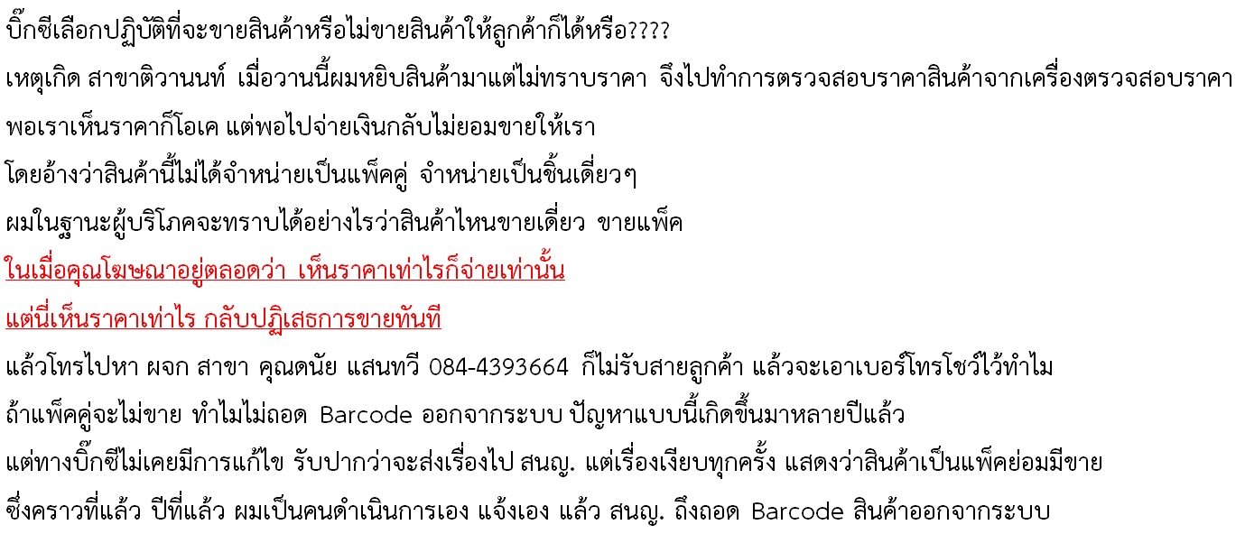 ร้องเรียน ห้างบิ๊กซีได้ที่ไหน จงใจราคาบิดเบือนราคาสินค้า คิดเกินราคา