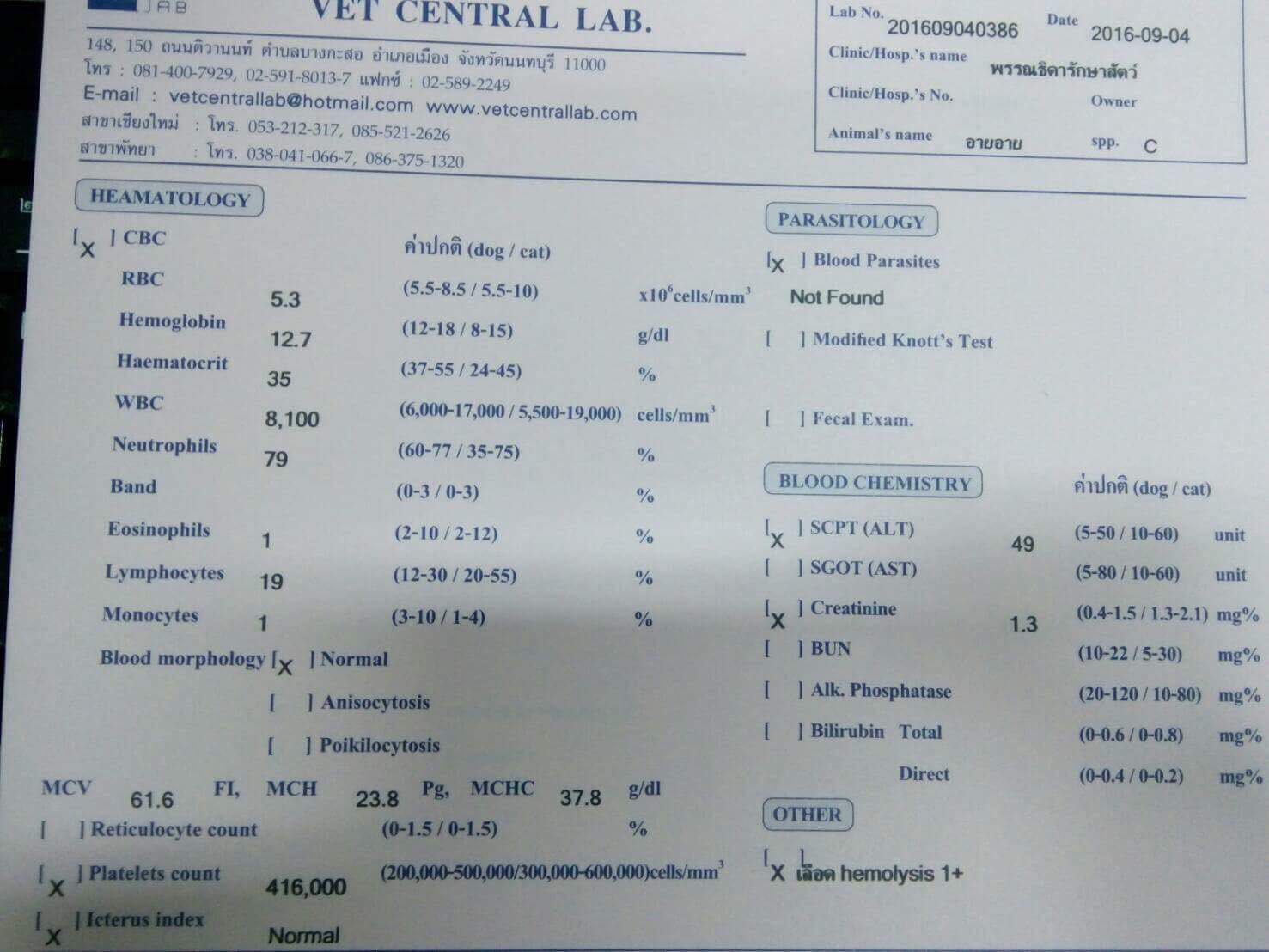 รบกวนช่วยดูผลเลือดสุนัขอายุ 14 ปีให้หน่อยค่ะ