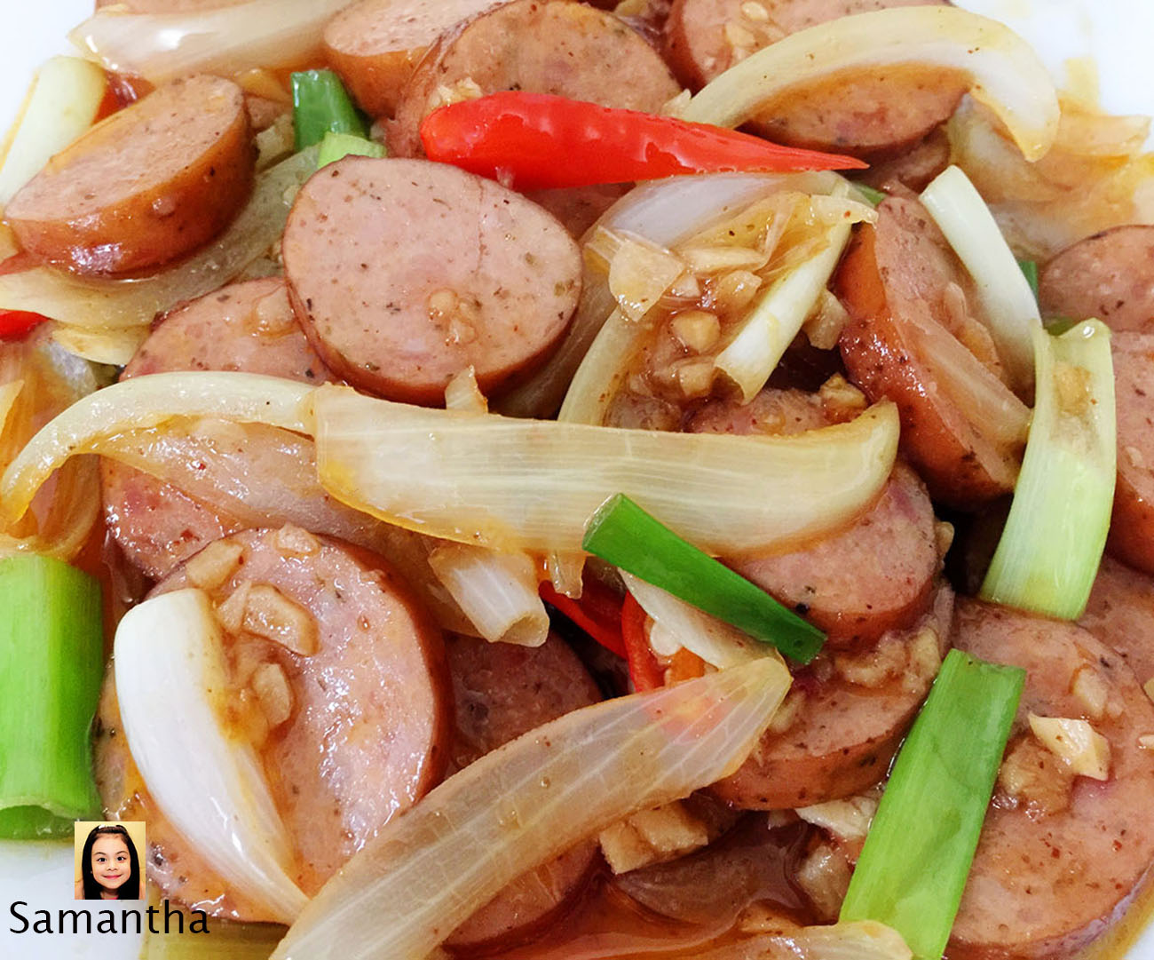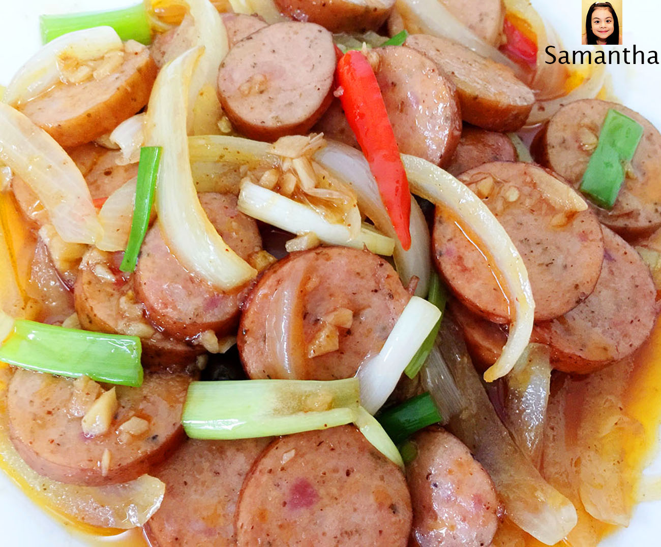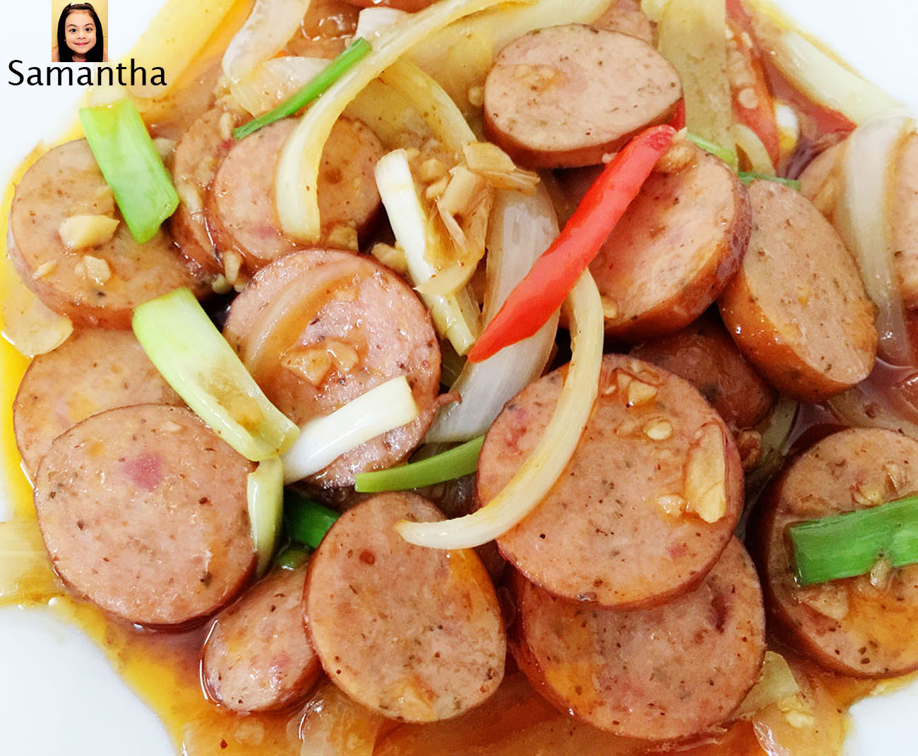 แกงเผ็ดวุ้นเส้น,ไส้กรอกผัดซอส