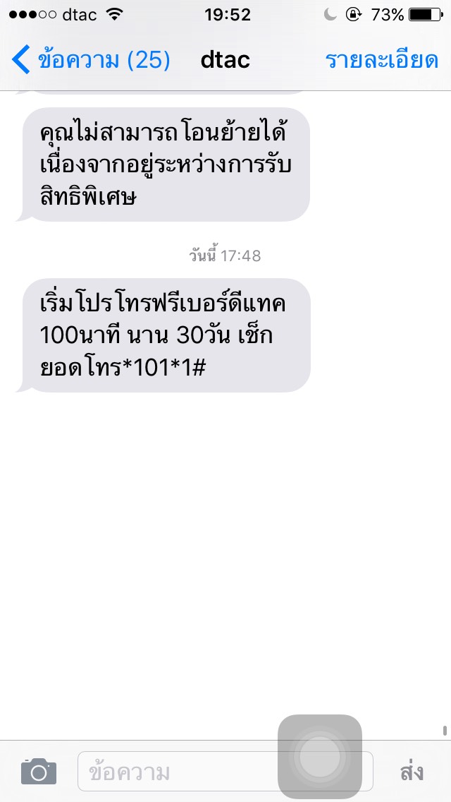 - มีข้อความเข้ามาว่า"คุณไม่สามารถโอนย้ายได้เนื่องจากอยู่ระหว่างรับสิทธิพิเศษ"