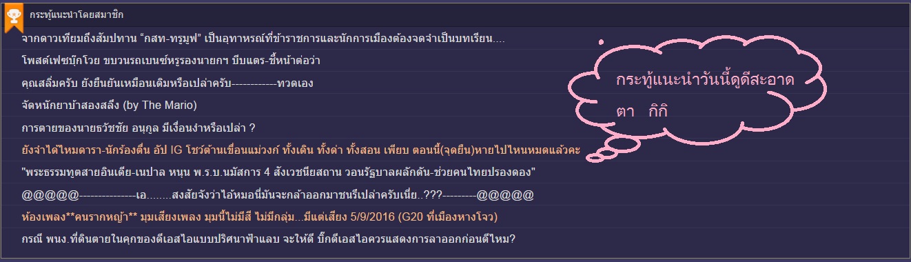 ดูกระทู้แนะนำนะเจ้าคะมีแต่กระทู้คนเสื้อแดง แต่มาดูกระทู้ทั้งหมด เอ้ามีกระทู้ ชะเลียติดๆกันเลยเจ้าคะ 555 ดูแล้วขรรมจินๆเจ้าคะ กิกิ