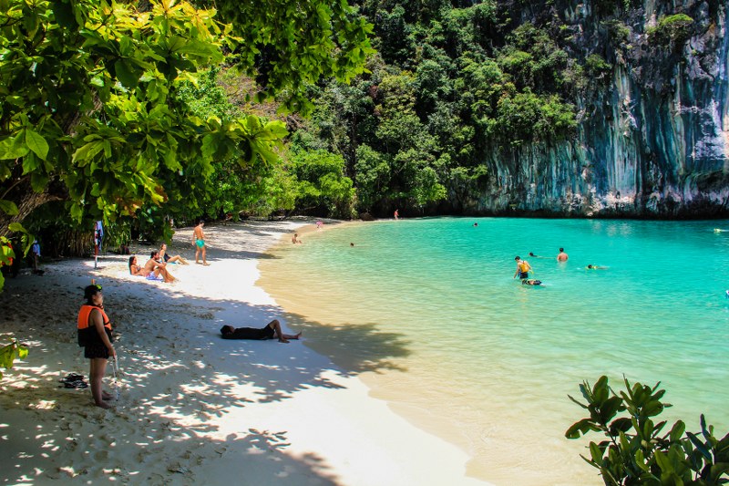 หลังจากนั้นไกด์ก็จะพาเราไปยังเกาะพีพีครับ ที่แรกที่ไกด์พาไปคือ สระมรกต หรือ Philey Lagoon