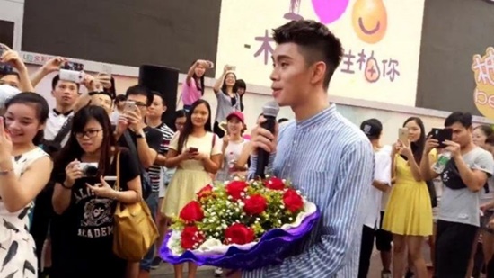 หลังจากฝ่ายหญิงปรากฏตัวขึ้นบริเวณนั้น พ่อหนุ่มสุดโรแมนติกรายนี้ก็ไม่รอช้า เริ่มปฏิบัติการเซอร์ไพรส์ขอเธอเป็นแฟนทันที เขาเริ่มต้นด้วยการร้องเพลงรักที่เขาแต่งขึ้นเอง ก่อนที่จะสารภาพความในใจที่เก็บไว้ตั้งแต่ปีที่แล้วว่า "ผมชอบคุณมาตั้งแต่วันแรกที่เราได้พบกัน ผมอยากให้ทุกคนรู้ว่าผมรักคุณ เป็นแฟนกับผมได้ไหมครับ"