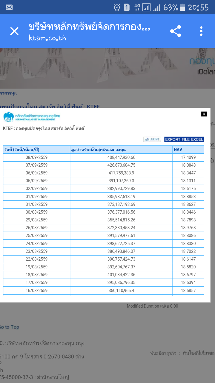 กองทุนรวมธนาคารกรุงไทยนะครับ ตอนนี้ถือหน่วยลงทุนของ KTEF อยู่ประมาณ 700 กว่าหน่วย มูลค่า NAV เมื่อวานอยู่ที่ 12.6731 และถือหน่วยลงทุน KTSF ประมาณ 900 กว่าหน่วย &nbs