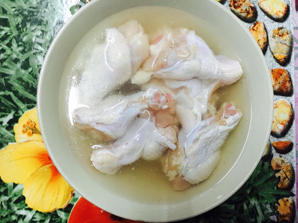 ขั้นที่ 2 เตรียมของเสร็จหมดแล้ว เอาไก่ไปแช่น้ำเกลือ 5 นาที