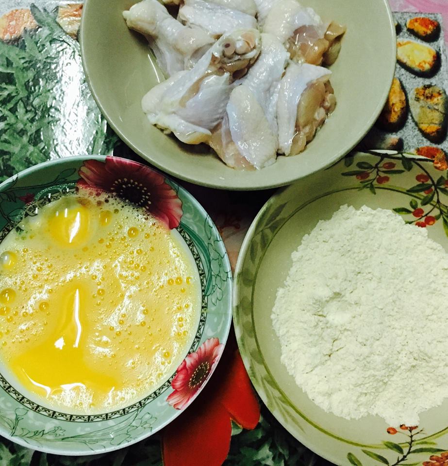 ขั้นที่ 4 เอาไก่ไปชุบ ไข่และแป้ง