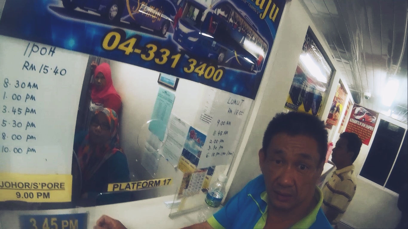 "ราคาตั๋วรถเมล์ถูกกว่าตั๋วรถไฟ" เป็นเรื่องจริง ค่าตั๋วรถเมล์ของบริษัทแห่งหนึ่ง ผมจ่ายไป 15 ริงกิต ถึงจะราคาแพงสักหน่อย แต่เป็นเบาะ 3 ที่นั่งแบบ Vip รับประกันจากคนขายตั๋ว(พูดภาษาไทย) ว่ากว้างมาก และนุ่มสบายเหมือนเมฆ จากนั้นคนขายตั๋วให้เดินออกไปรอรถเมย์ที่ท่ารถ เพื่อเตรียมตัวสำหรับการไปขึ้นรถรอบบ่าย 3 ที่จะถึงในอีก 30 นาทีนี้แล้ว