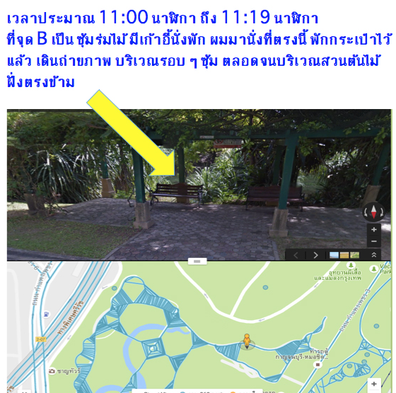 จุด B คือจุดที่ผมเดินถ่ายภาพ และวางกระเป๋ากล้องไว้ที่ม้านั่ง