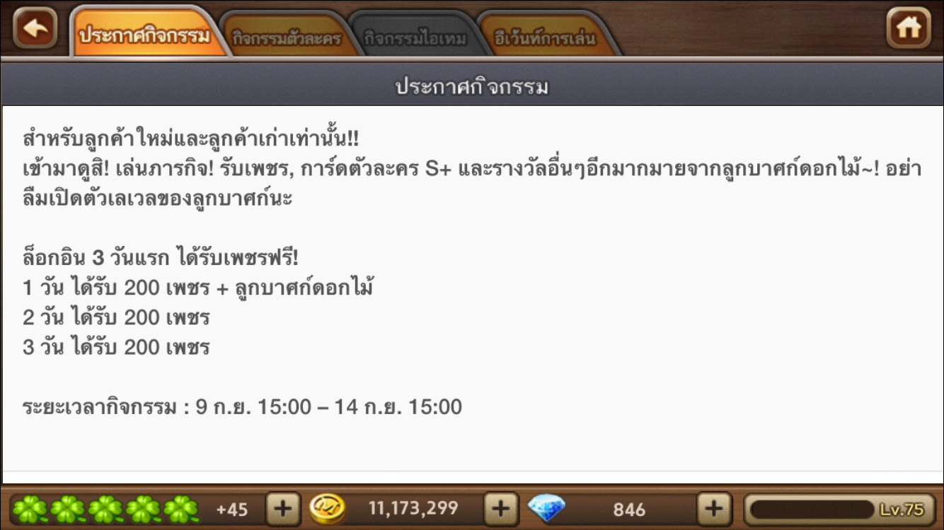 ล็อคอิน 3 วันแรก ได้เพชร 600 + ลูกบาศก์ดอกไม้