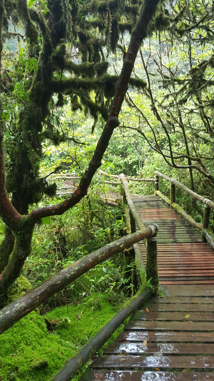 หลังจากชมวิวกันเต็มอิ่ม เราก็เดินทางไปดอยอินทนนท์กันต่อค่ะ เราตัดสินใจไปเดินอ่างกา และแล้วฝนก็ตกค่าา ความชื้นของอ่างกาเลยเพิ่มขึ้นไปอีก ความรู้สึกเหมือนเข้าไปในดินแดนลึกลับเลย ไม่มีนักเที่ยวเดินกับพวกเราเลยค่ะ แต่ก็ไม่น่ากลัวนะคะ